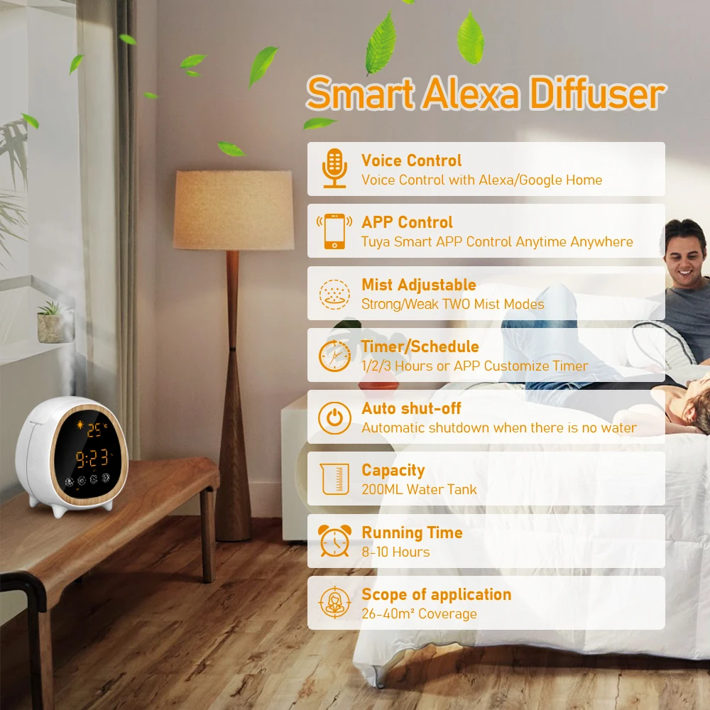 - Smart Wi-Fi Diffuser -Compatible with Alexa and Google home, use your voice to control the diffuser.